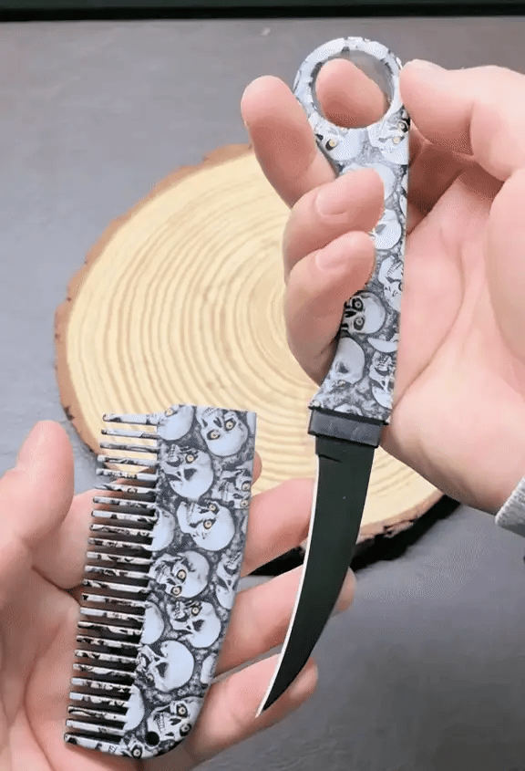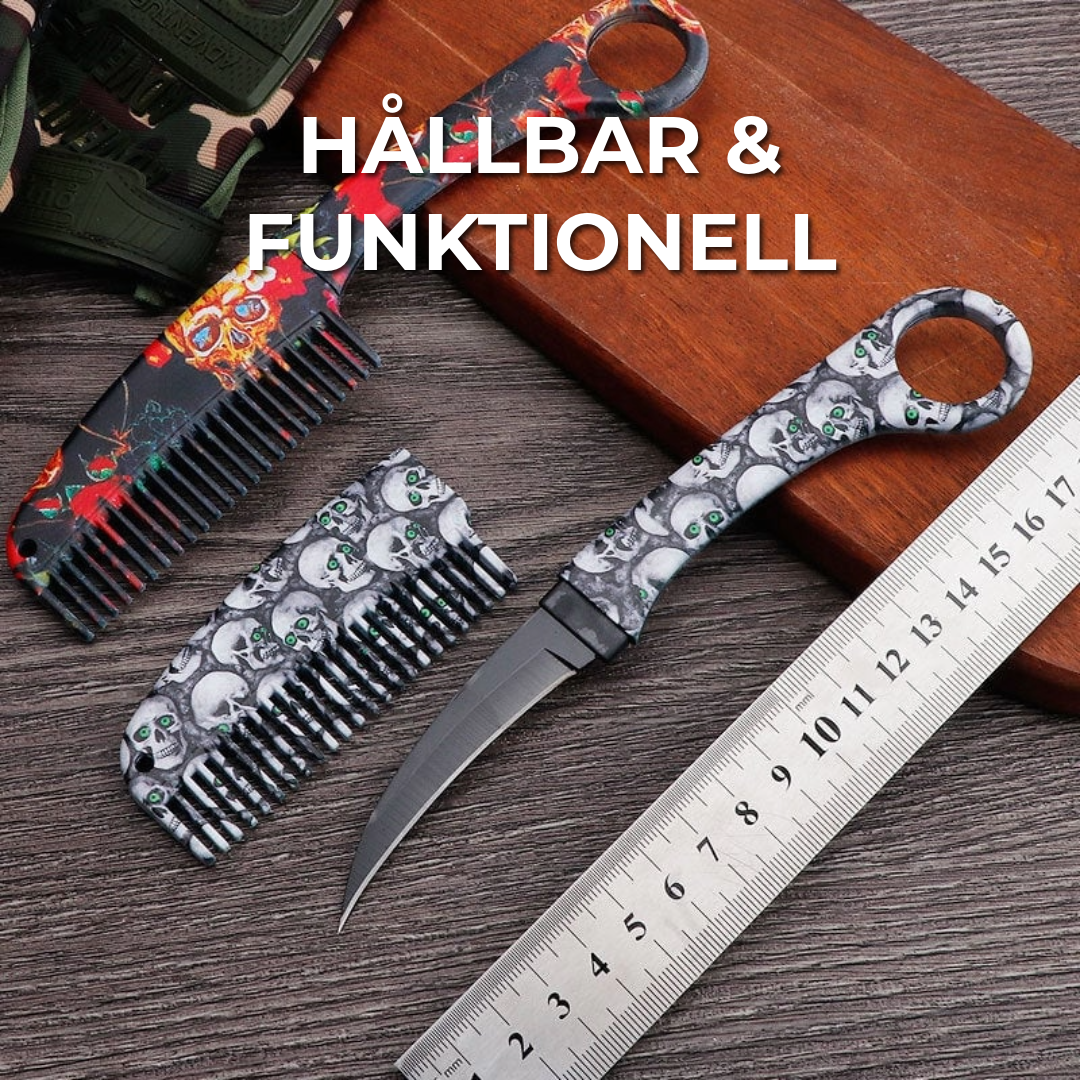 Varför ta med något som du aldrig använder? Den här kammen fungerar perfekt i vardagen – för ditt hår, men också som den ultimata dolda verktyget. Tillverkad av robusta material så både kniven och kammen håller länge utan att kompromissa med kvalitet eller effektivitet.