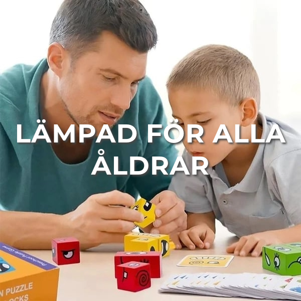 Skapa unika ansikten med de mĂĄngsidiga blocken! Barn och vuxna kan uttrycka sin kreativitet genom att blanda och matcha ansiktsdrag.