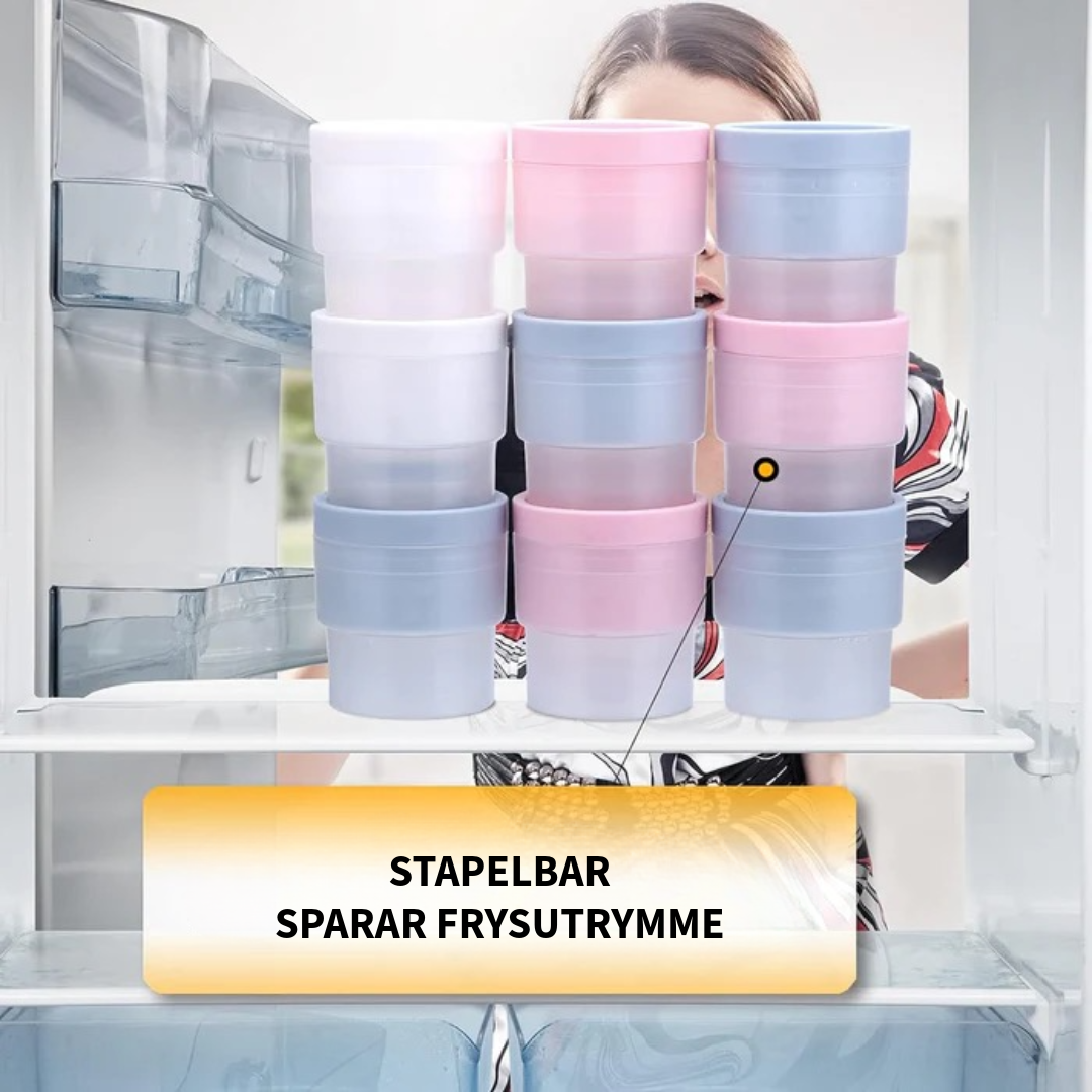 Tack vare den stackbara designen tar formarna knappt någon plats i frysen. De är lätta att rengöra i diskmaskinen och behåller sin form och kvalitet, gång på gång. Detta gör isbollformarna till en hållbar lösning för vardaglig bekvämlighet.