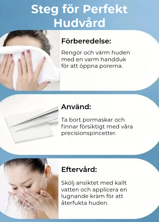 De här professionella pincetterna är perfekta för att ta bortpormaskar, med ultimat precision och enkelhet. Oavsett om du har problem med envisa pormaskar eller bara vill hålla huden ren, är PrecisionTweez™ ditt verktyg.