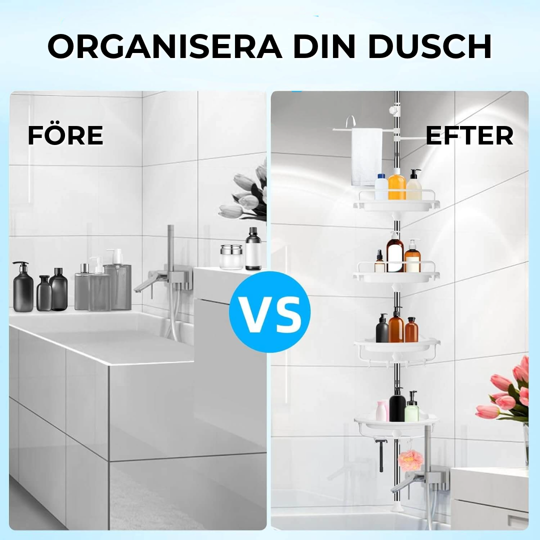 Den stilrena och minimalistiska designen ger ditt badrum ett lyxigt utseende, samtidigt som alla dina hygienprodukter hålls snyggt organiserade. Ingen röra i duschen, allt inom räckhåll för en avslappnande duschupplevelse.