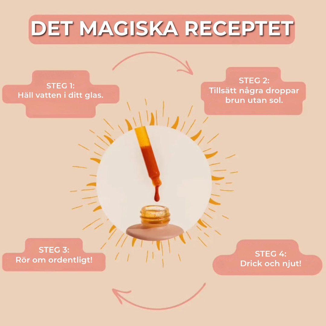Drömmer du om en strålande, naturlig hudton utan sol eller krångel? Med några droppar Lyxig Självbrunare i din dryck får du den perfekta bronstonen – utan orange nyanser. Känn dig omedelbart vackrare och mer självsäker, varje gång du ser dig i spegeln!