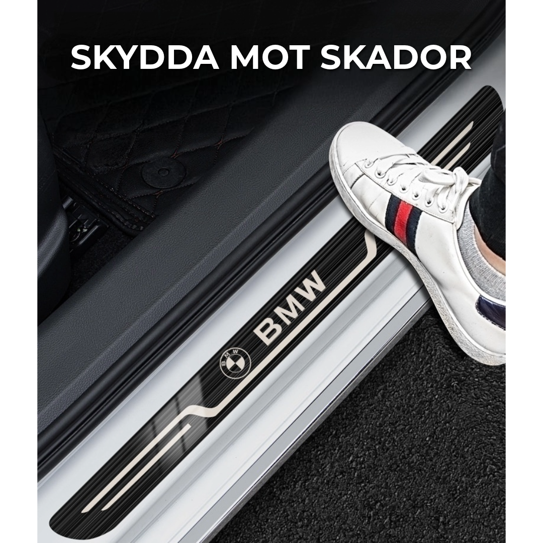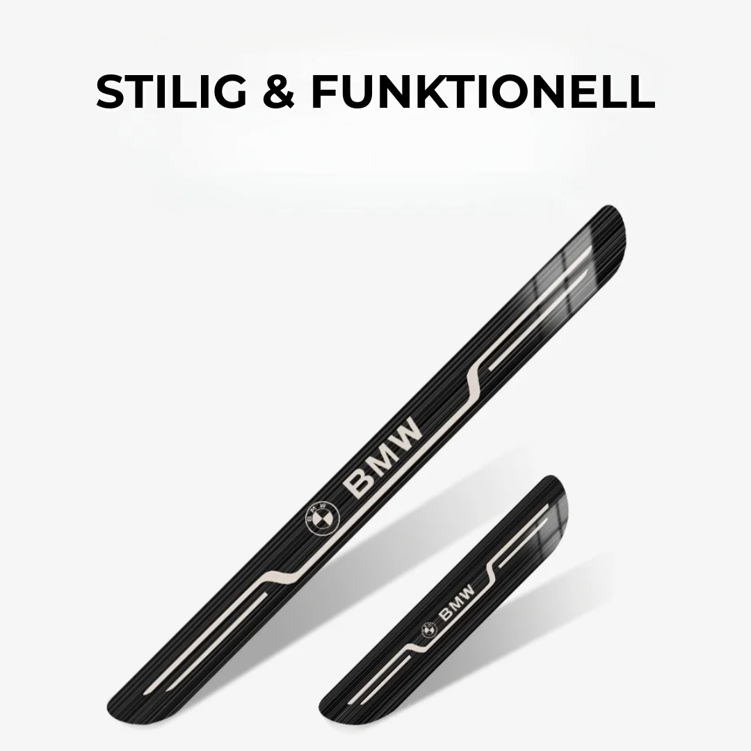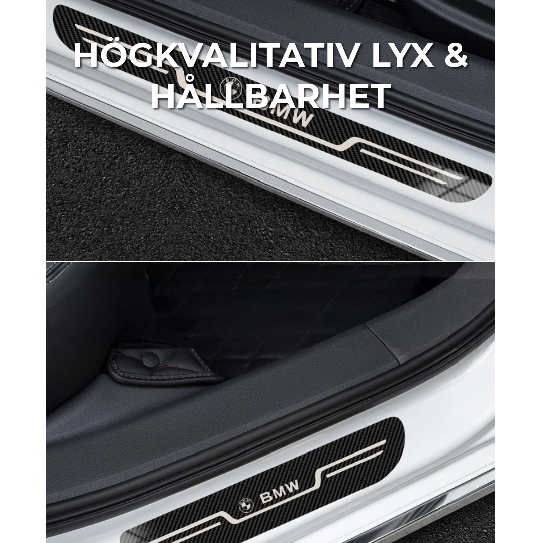 Tillverkade av rostfritt stål med en korrosionsskyddsbehandling, är dessa dörrtröskelskydd motståndskraftiga mot slitage, fukt och smuts, vilket gör att de behåller sitt lyxiga utseende. Den lasergraverade logotypen och den raffinerade spegelfinishen ger din bil ett premiumutseende som gör ett omedelbart intryck och lägger till en exklusiv känsla.