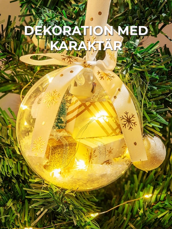 Välj bland 4 kreativa stilar och ge din juldekoration en personlig stil. Oavsett om du älskar att läsa, shoppa, samla eller andra unika tillbehör, finns det alltid en design som passar perfekt för dig!