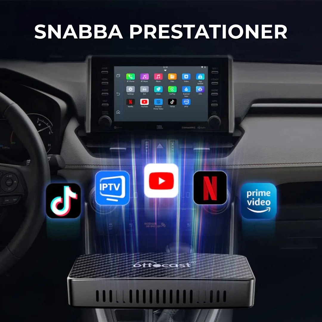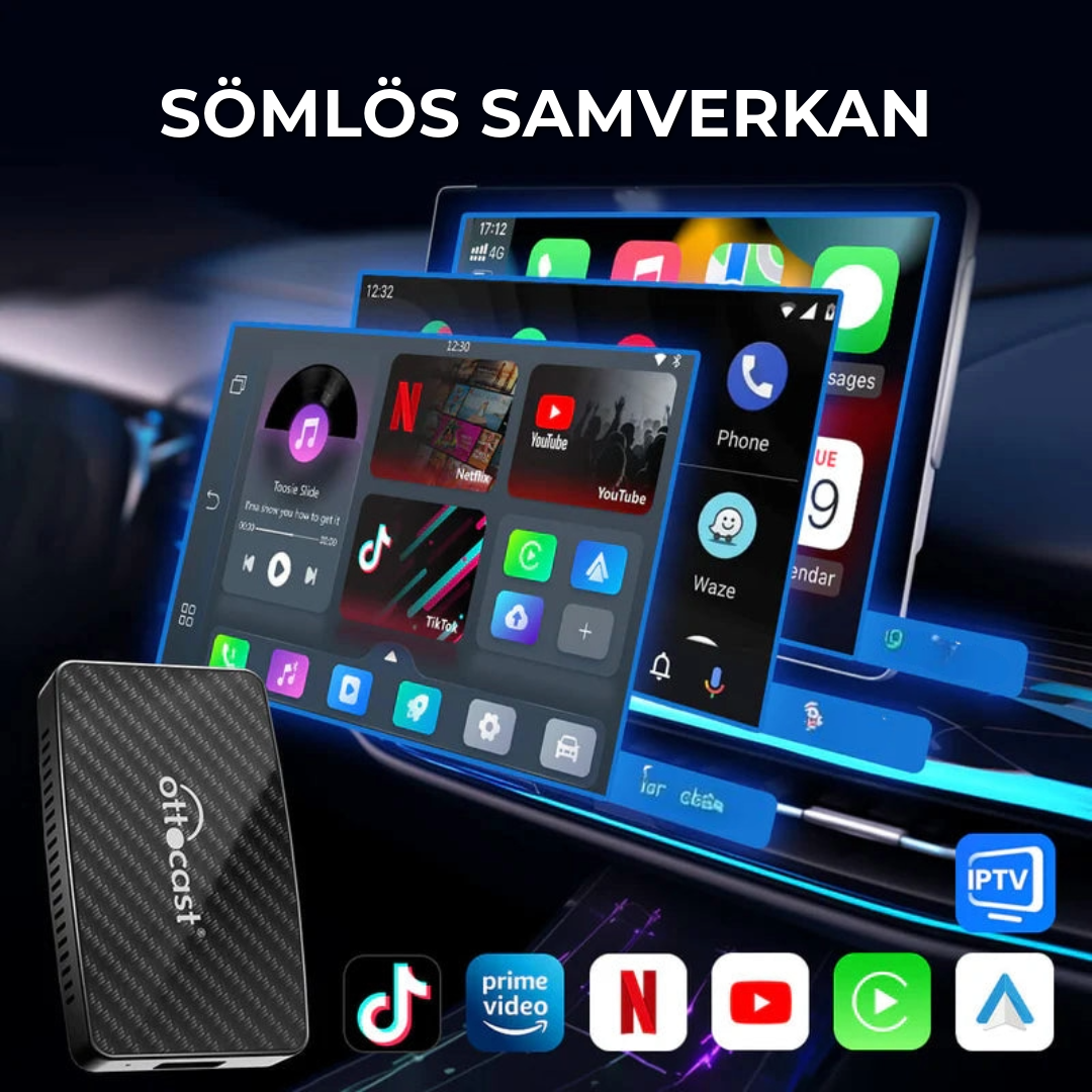 OTTOCAST™ ger direkt åtkomst till YouTube, Netflix, TikTok och mer, och växlar sömlöst mellan trådlös Apple CarPlay och Android Auto. Perfekt för underhållning, navigation och handsfree bekvämlighet. Idealisk för långa resor eller trafik!