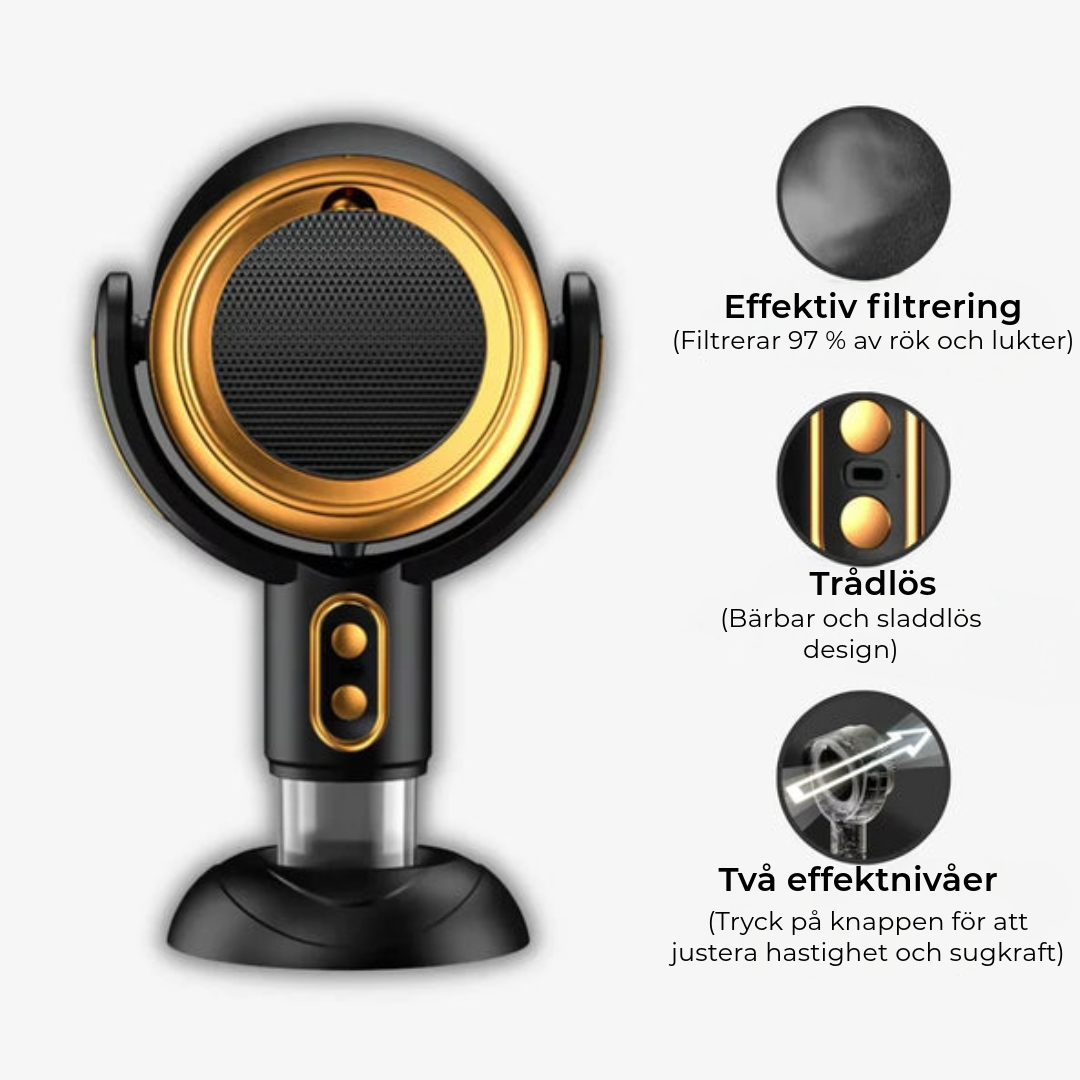Med ett avancerat flerlagers filtreringssystem tar denna luftrenare bort 97 % av alla skadliga kemikalier, rökpartiklar och lukter direkt. Ingen mer unken luft eller envis rök i ditt hem!