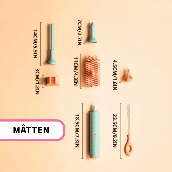 Inte bara för flaskor! Denna rengörare kan även desinficera glas, muggar, babyaccessoarer och andra köksredskap, vilket gör den till en perfekt allt-i-ett rengöringslösning för upptagna föräldrar och sportentusiaster!