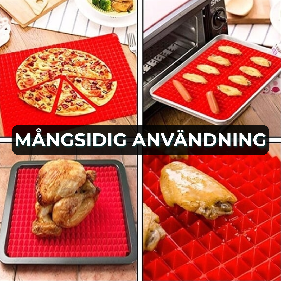 Oavsett om det är i ugnen, mikrovågsugnen, frysen eller diskmaskinen – denna matta klarar allt! Skär den i önskad storlek, rulla ihop den för enkel förvaring och njut av det hållbara silikonmaterialet. Laga mat utan begränsningar och med full frihet!