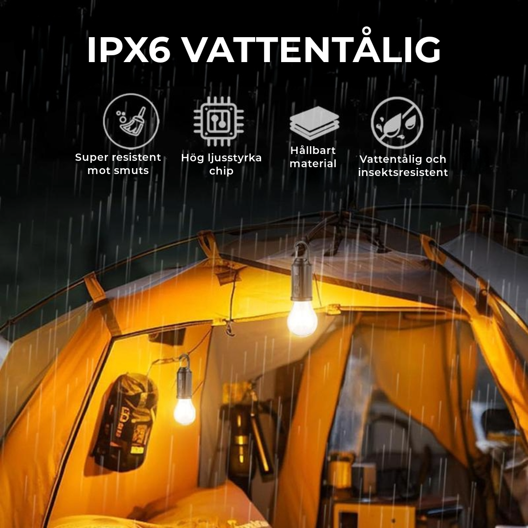 Liten nog för din handflata, passar denna LED-tältlampa enkelt i din ryggsäck, bil eller hem. Oavsett om det är för camping eller nödsituationer – ta med dig ljus överallt utan krångel!