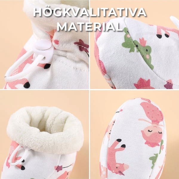 Med sin smarta design är dessa tofflor lätta att ta på och ta av, vilket gör det enkelt att klä på din bebis. Inget mer krångel!