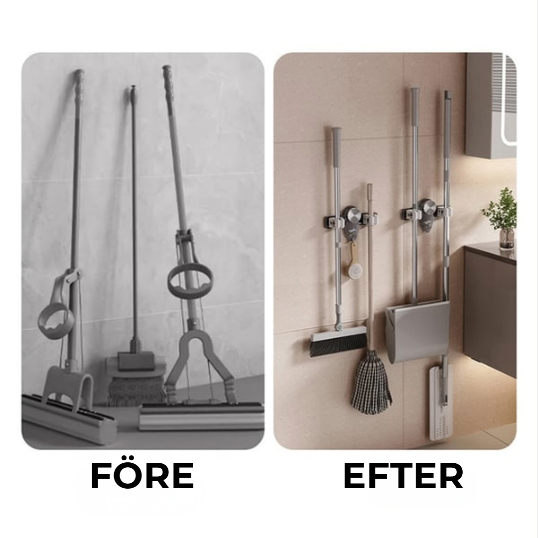 Inget mer röriga hörn! Denna hållare säkerställer att dina sopkvastar, sopskyfflar och mer förvaras överskådligt, så ditt hem ser alltid ordnat ut.