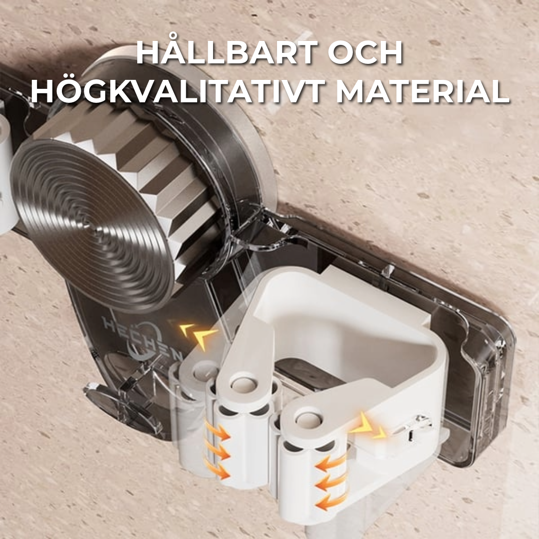 Tack vare de kraftiga sugkopparna kan du enkelt fästa hållaren på varje slät yta, utan att skada väggen.