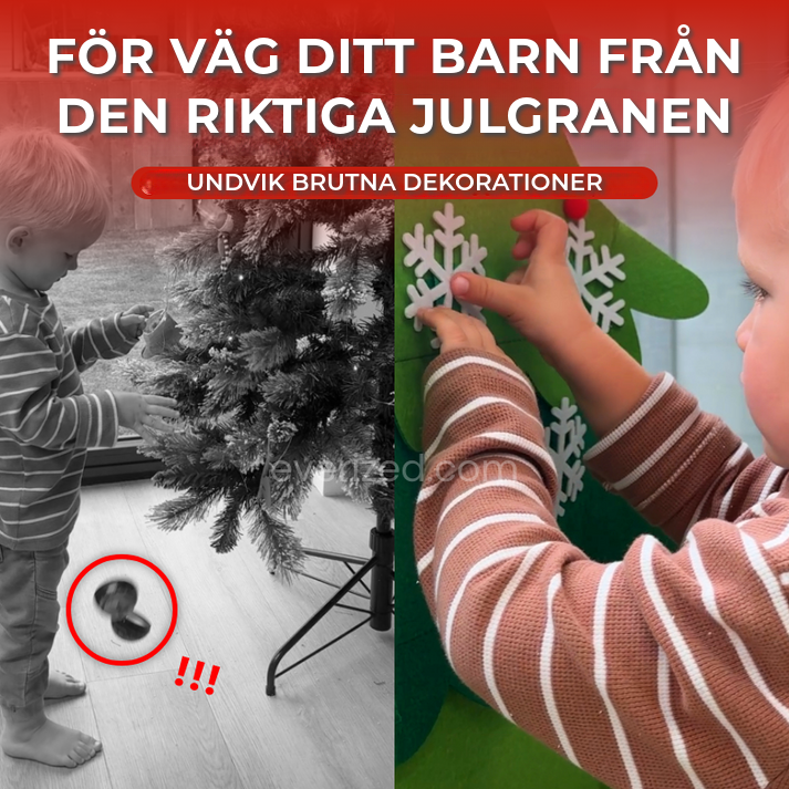 Ingen oro för trasiga julgransdekorationer; vår gran är 100% barnvänlig och innehåller inga små delar som kan sväljas.